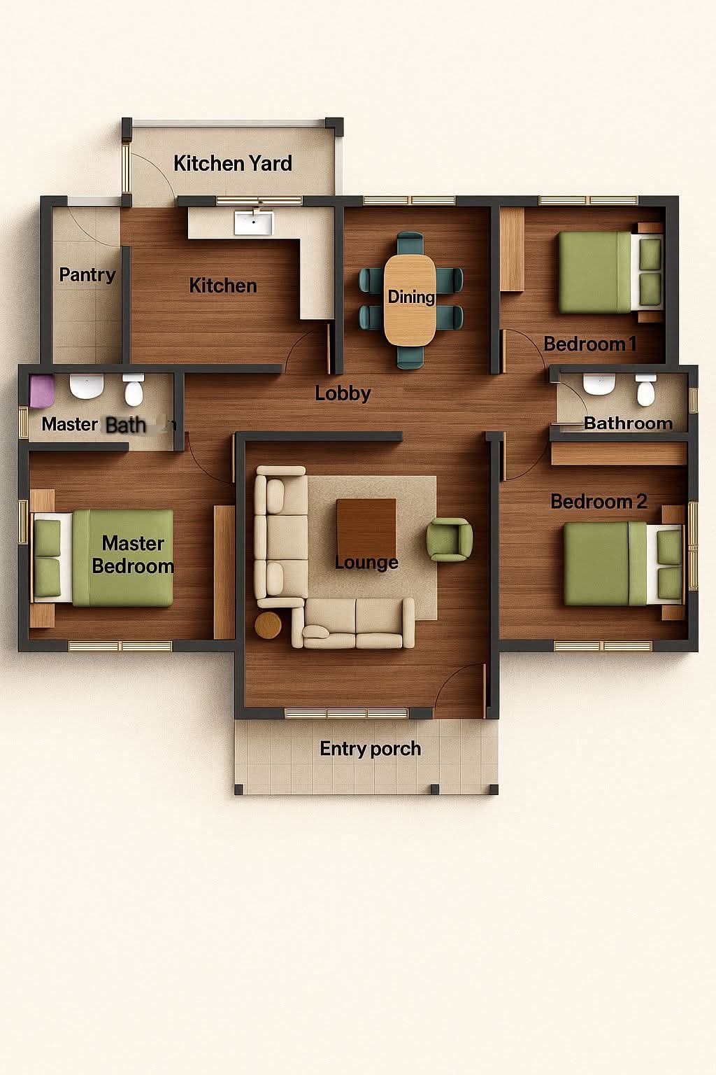 ✨ This house design combines comfort, functionality, and modern elegance—making it an excellent choice for small to medium-sized families.