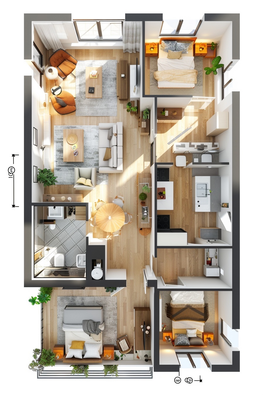 • Overall, this floor plan is ideal for urban living, offering flexibility, comfort, and a contemporary lifestyle in a compact yet spacious arrangement.