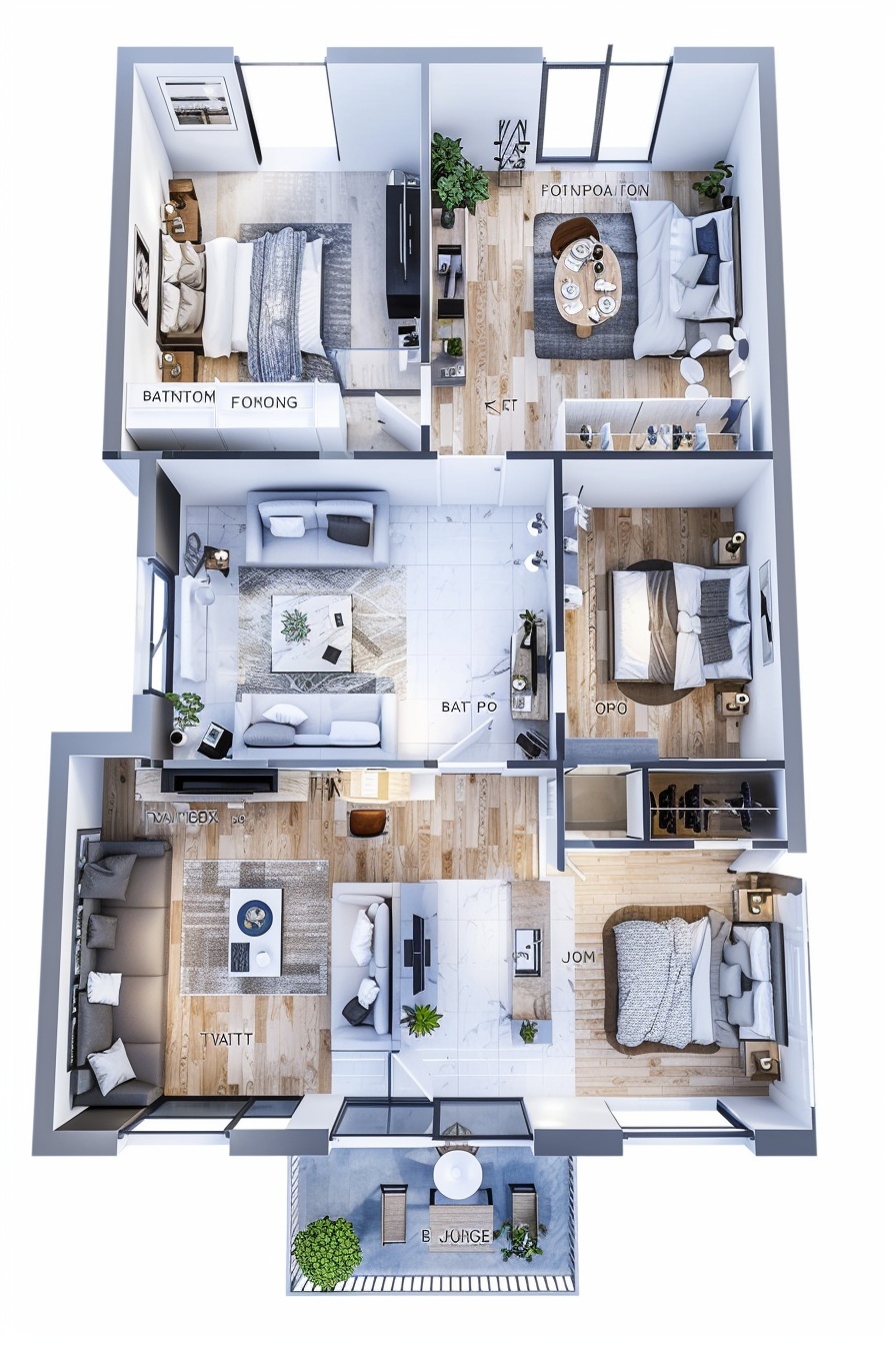 - This thoughtfully designed 3 bedroom modern apartment floor plan offers a perfect balance between comfort, functionality, and contemporary living. The layout includes three well-proportioned bedrooms arranged to provide privacy and natural light, making it ideal for families, shared living, or rental investment.